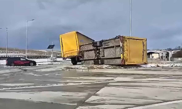Remorca unui camion care staționa vineri, în parcarea Tălmaciu de pe Autostrada A1, în județul Sibiu, a fost răsturnată de rafale puternice de vânt. Imaginile cu incidentul au fost publicate...