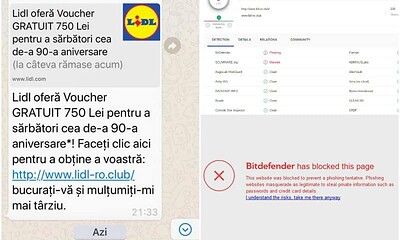 Tentativă de fraudă online ce implică numele Lidl, distribuită în mesaje pe WhatsApp. Cum sunt ademeniți clienții