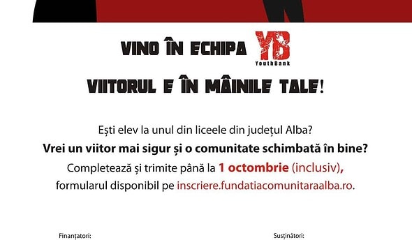 Echipa YouthBank se mărește cu liceeni entuziaști, dornici să schimbe în bine comunitatea. Înscrierile se fac până la 1 octombrie