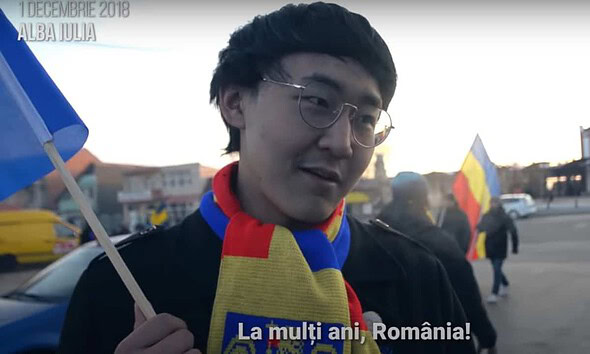 Yin Yuguo, studentul chinez înfofolit în steaguri tricolore, adolescentul ochelarist filmat de Recorder în gara din Alba Iulia, în dimineața zilei de 1 decembrie 2018, de Centenar, care ne-a urat...