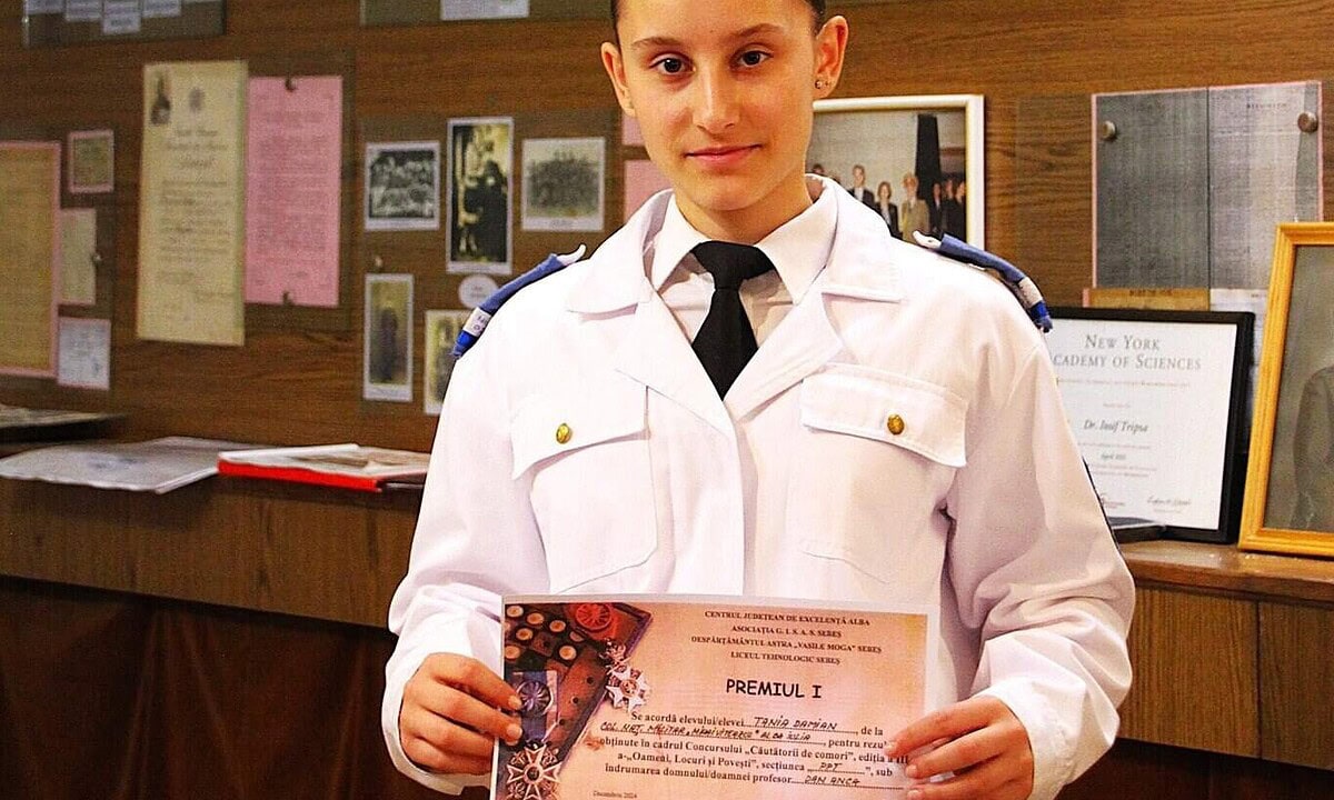 Eleva sergent Tania Damian (clasa a XI-a) a obținut Premiul I la Concursul de istorie „Căutătorii de comori”, cu o lucrare bazată pe povestea de viață a străbunicului ei, care a luptat în Al Doilea Război mondial, iar în anul 1944, a fost luat prizonier, au transmis reprezentanții Colegiului Național Militar " Mihai Viteazul" Alba Iulia.