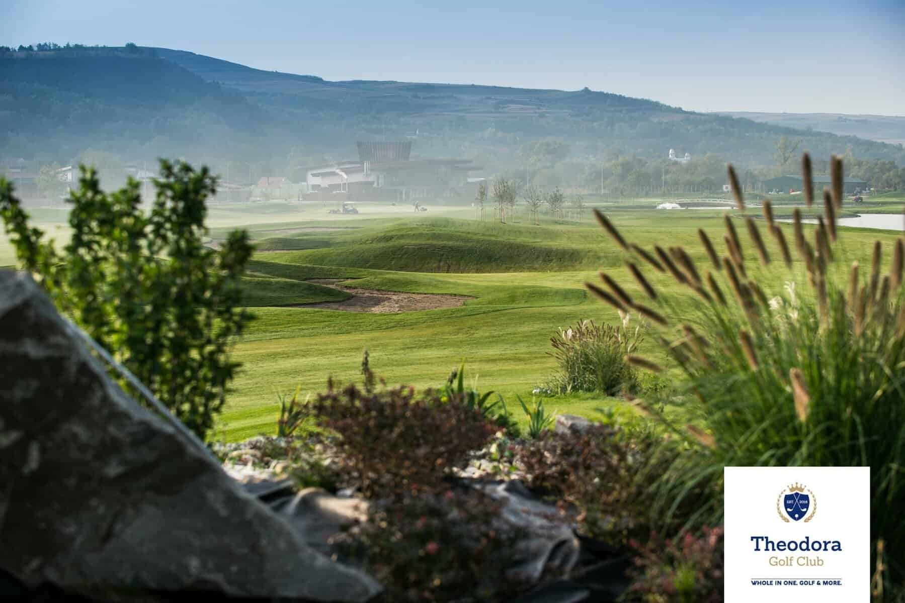 Theodora Golf Club este un teren de golf premium, de 18 cupe, pe o suprafață de 56 ha, în lungime totală de 6518 m și numără 4 parcursuri par 3, 10 parcursuri par 4, 3 parcursuri par 5 și 1 parcurs par 6- cel mai lung din Europa- 735 m. Facilitățile de golf includ simulatorul indoor și zonele de putting green, chipping area, bunkere de nisip și driving range-ul acoperit, cu sistem audio integrat si 20 de locuri de antrenament disponibile pe tot parcursul anului. Lacul unic de 5 ha cu insulă și cele două green-uri, unde pasionații golfului au posibilitatea să își exerseze măiestria, completează imaginea deosebită a terenului de golf.