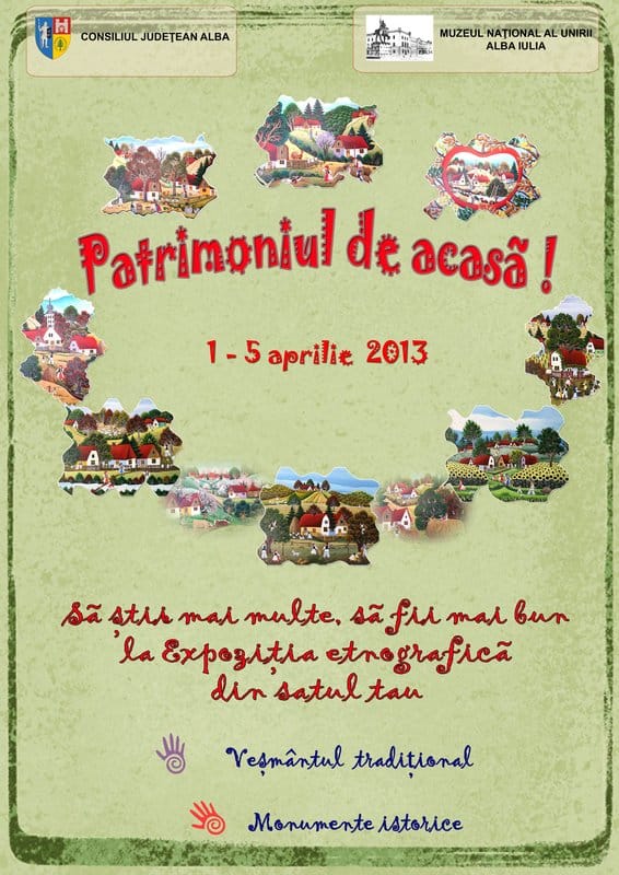 Sub genericul „Patrimoniul de acasă”, cei mici, ghidați de cadrele didactice și custozii expozițiilor etnografice vor desfășura mai multe activități prin care vor descoperi costumul popular și monumentele istorice, valorificându-și totodată talentul, creativitatea și ingeniozitatea.