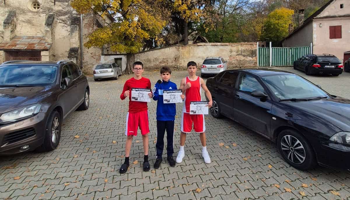 Trei boxeri ai CSM Unirea Alba Iulia, antrenați de Andrei Dărămuș, pe podium la o competiție sportivă desfășurată la Sibiu