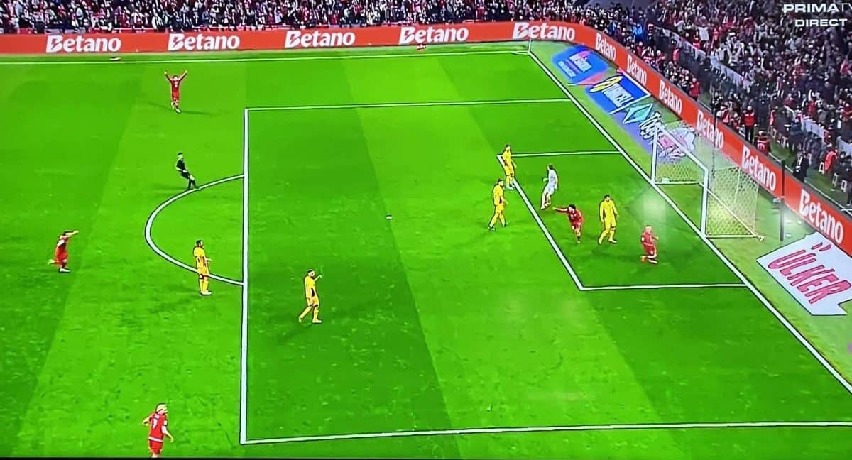 Tricolorii au ratat o ocazie uriașă în minutul 77. Fotbalistul originar din Alba, Nicolae Stanciu, care l-a înlocuit în minutul 71 pe Ianis Hagi, a șutat din interiorul careului iar mingea a lovit bara din dreapta porții.