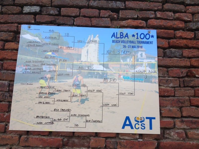 În weekend-ul ce a trecut, la Alba Iulia s-a desfășurat turneul masculin de volei pe plajă „ALBA 100”. Pe terenul de volei de lângă Poarta I-a a Cetății Alba Carolina, 12 echipe au luptat pentru a câștiga trofeul competiției.