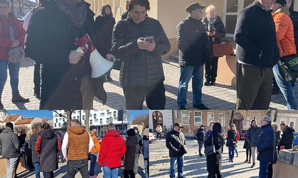 Protest în fața Tribunalului Alba. Tunul imobiliar dat de avocatul Jidveian scoate oamenii în stradă. Mai multe persoane care au dat bani ca să cumpere apartamente în cele două blocuri...