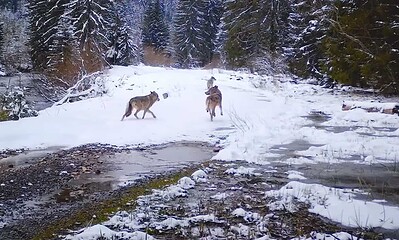 O haită de lupi a fost surprinsă de camerele de supraveghere amplasate pe teritoriul Parcului...