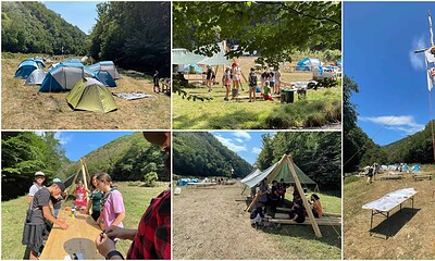 Zeci de copii și adolescenți, însoțiți de câțiva adulți, au luat parte la o tabără...