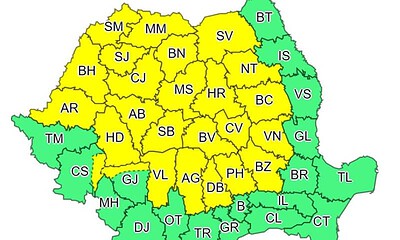Meteorologii au emis o atenționare Cod Galben de furtuni valabilă sâmbătă, în mai multe zone...