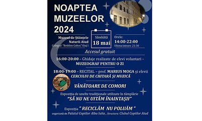 Aiudenii sunt aşteptaţi sâmbătă, 18 mai, la Muzeul de Științele Naturii din Aiud, la Noaptea...