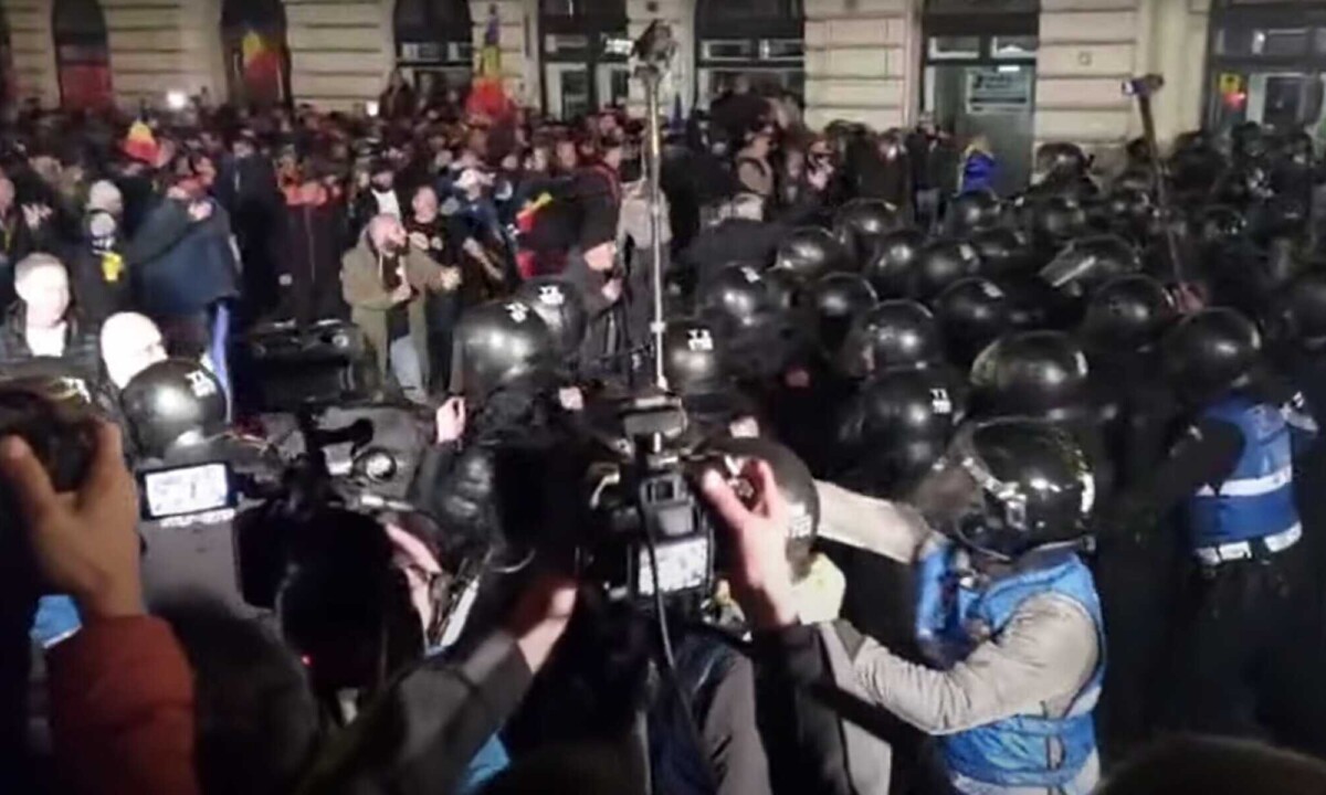 Patru jandarmi sunt internați, mai mulți sunt răniți, mașina Digi24 a fost avariată, mai multe geamuri au fost sparte, iar mobilier stradal a fost distrus.