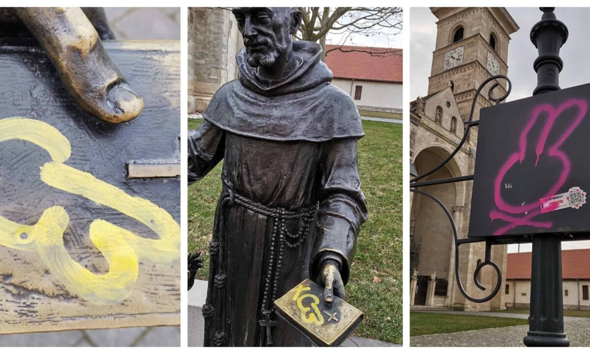 Nu au scăpat de vopsele de exemplu nici măcar statuile de bronz din Cetatea Alba Carolina sau alte obiective istorice din acest perimetru.