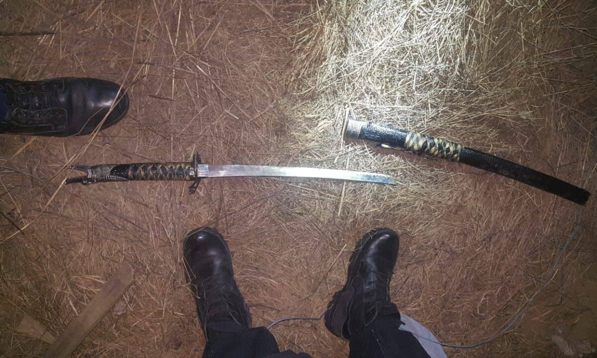 Acesta avea asupra sa o sabie de aproximativ 80 de centrimetri, pe care nu a mai apucat să o folosească, fiind imobilizat imediat de oamenii legii.