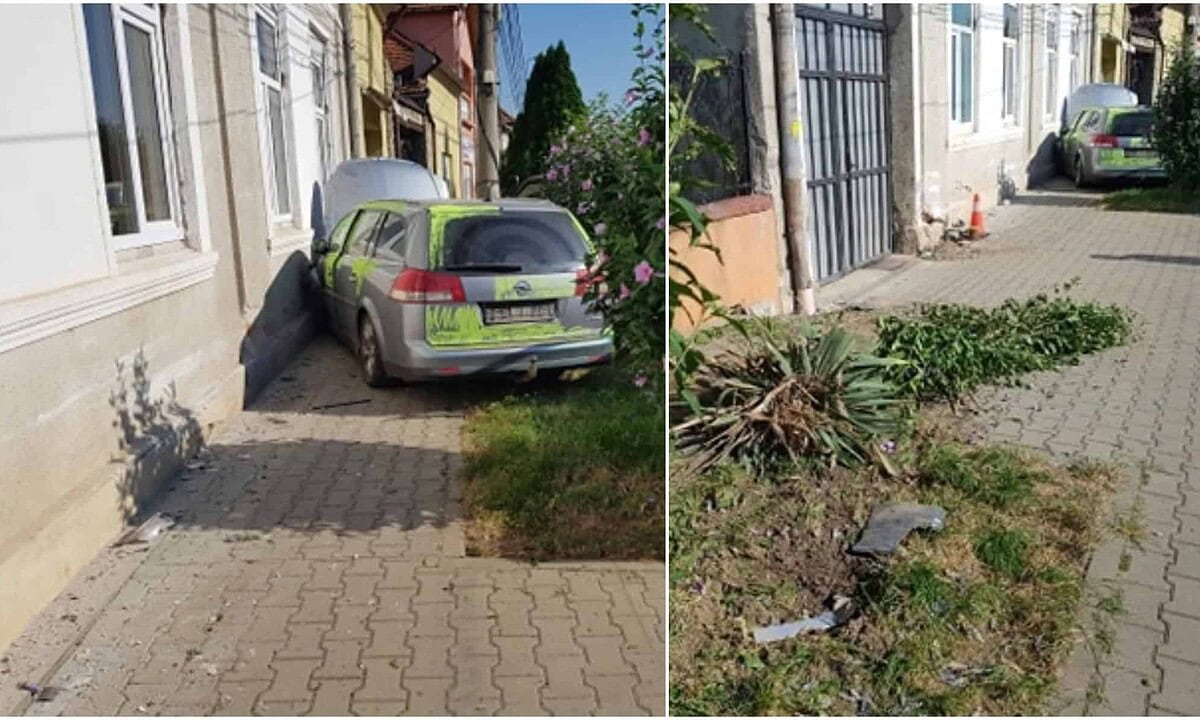 UPDATE FOTO: Mașină furată din fața unui imobil din Alba Iulia. Hoțul a abandonat-o după ce a intrat cu ea într-o casă