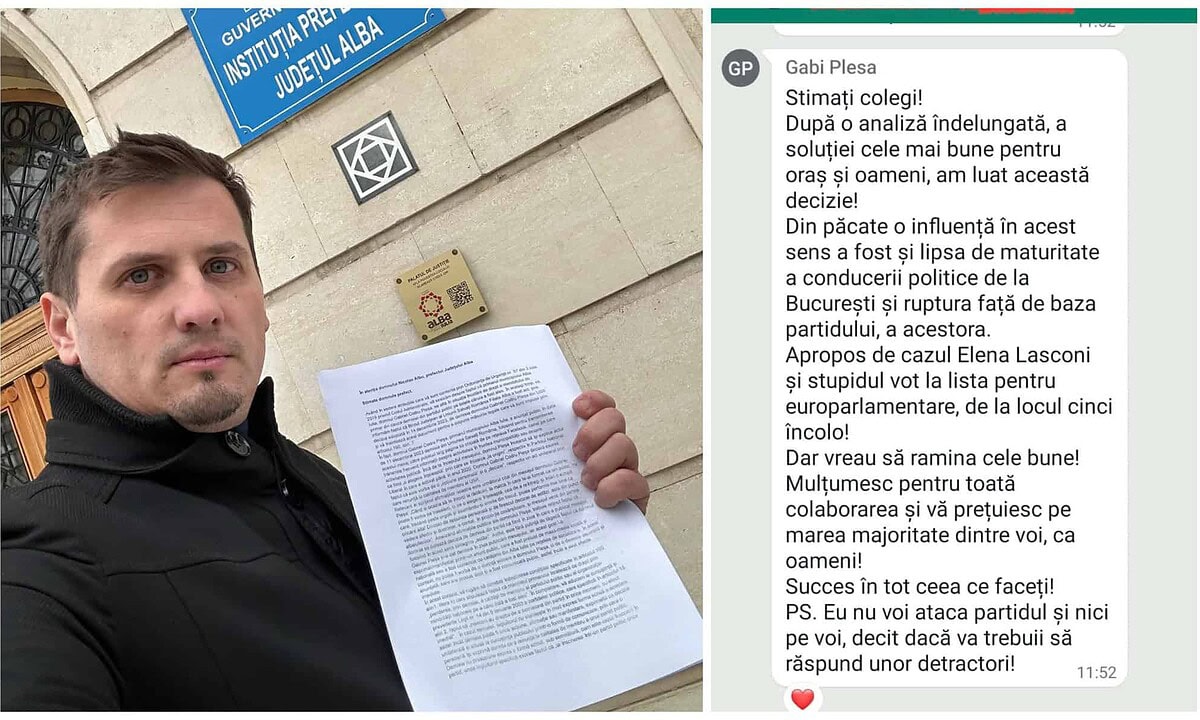 De asemenea, deputatul Beniamin Todosiu a postat și o captură de pe grupul de WhatsApp al USR Alba, cu mesajul lui Gabriel Pleșa către reprezentanții partidului.