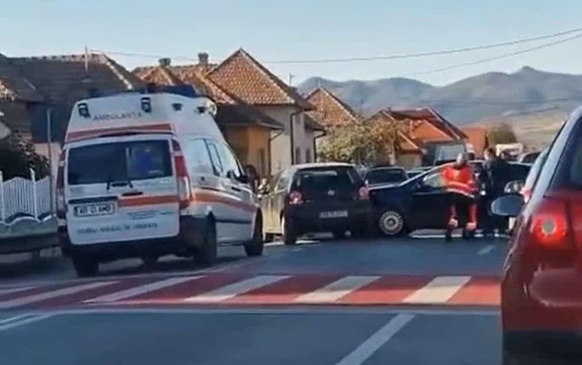 VIDEO: Accident la Alba Iulia, zona Micești, în apropierea unei intersecții. Trei autoturisme implicate