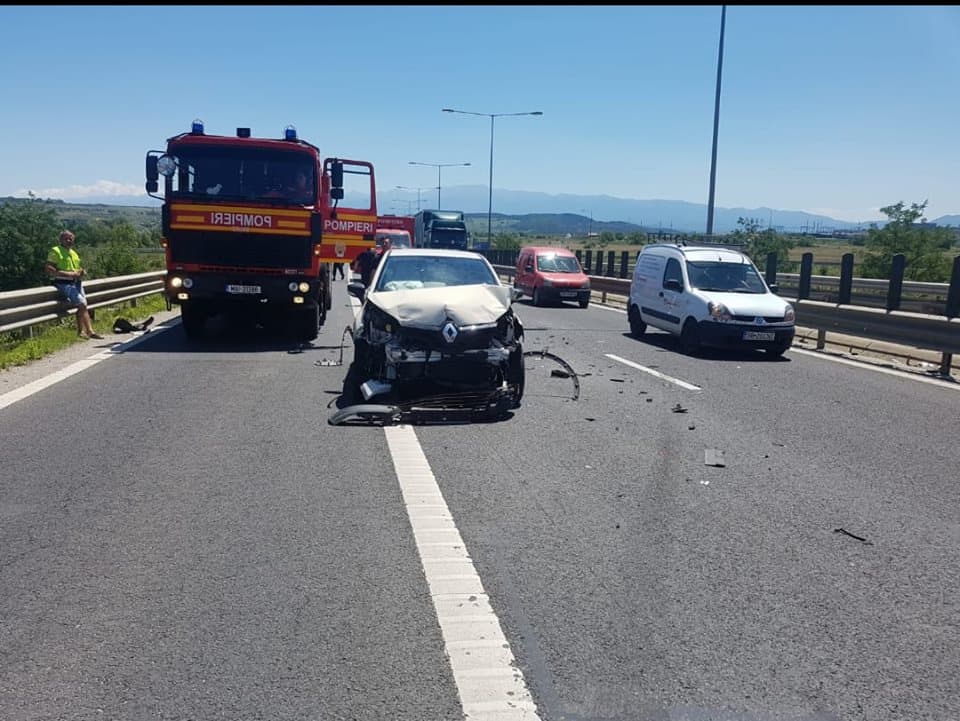 FOTO-VIDEO: ACCIDENT pe A1, Sibiu-Sebeș. Şase răniţi, după ce o şoferiţă a vrut să întoarcă maşina pe autostradă