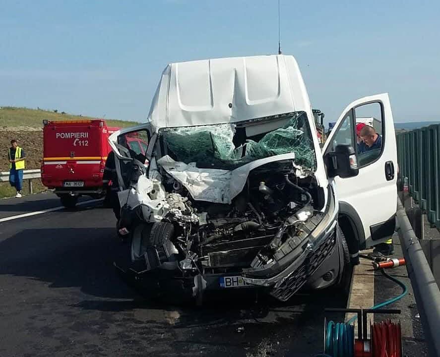 Se pare că șoferul unui microbuz transport marfă a intrat în coliziune față - spate cu un autocamion condus regulamentar și apoi cu glisiera mediană. Șoferul vinovat are 21 de ani, jud. Iași. Din primele cercetări, ar fi adormit la volan. Fără victime. Trafic alternativ.