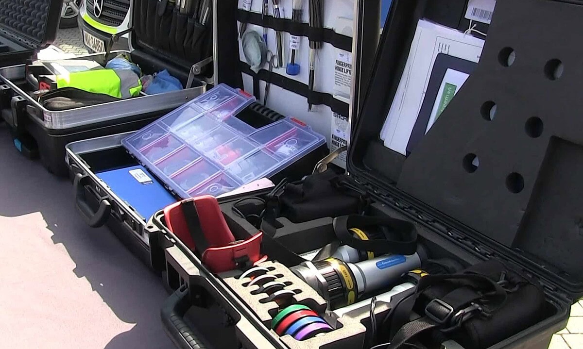 De asemenea mai au o trusă cu unelte, care poate fi confundată foarte ușor cu o cutie cu scule a unui meșter. Este vorba despre o trusă care conține de la șurubelnițe și până la rulete de măsurat, fiecare instrument fiind folositor pentru a preleva o anumită urmă.