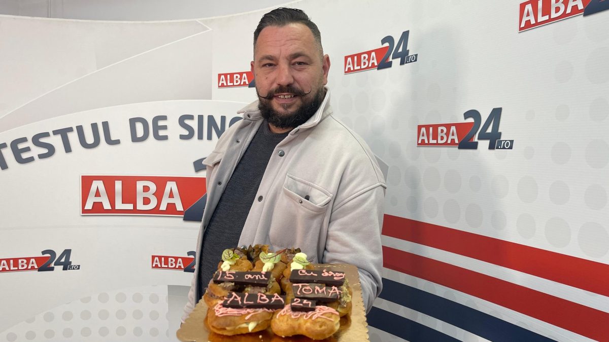 VIDEO: Chef Toma, bucătarul Cetății, în vizită la Alba24.ro cu ocazia a 15 ani de activitate. Ce prajituri le-a adus reporterilor
