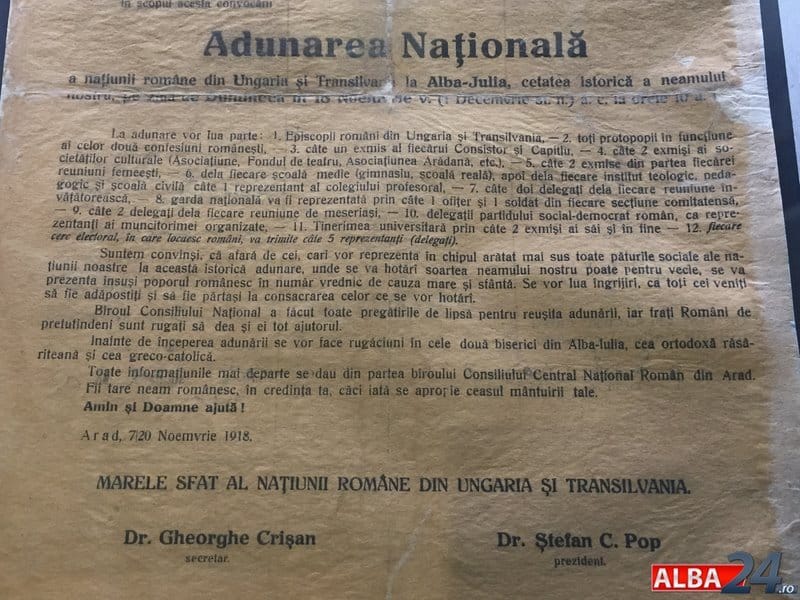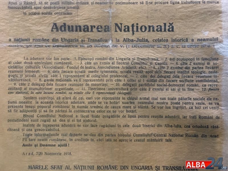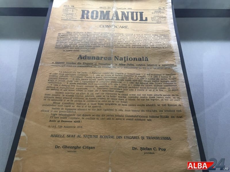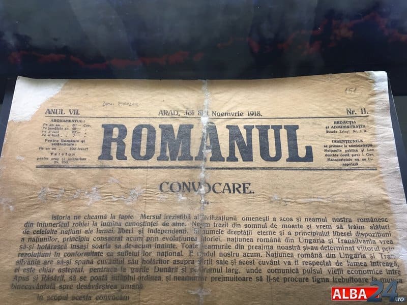 La Muzeul Naţional al Unirii din Alba Iulia a fost prezentant marți exponatul lunii august, respectiv Ziarul Românul, din 8/21 noiembrie 1918. Ziarul conţine Convocarea la Adunarea Națională de la Alba Iulia, respectiv detalii cu privire la modul în care aceasta era organizată.