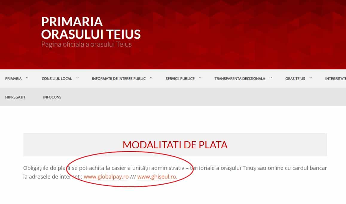 Pentru partea de plăți, există un link de redirecționare spre Ghișeul.ro.