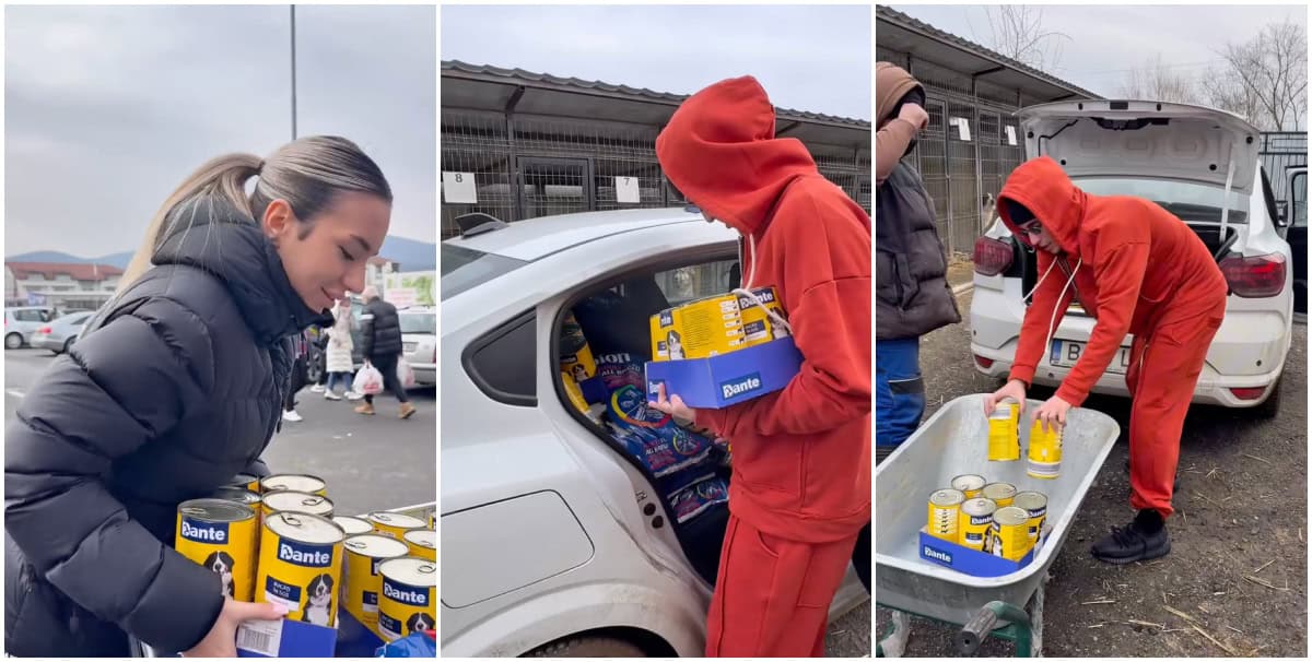 Zilele trecute mi-au intrat banii și vorbeam cu Naomi, spuneam că vrem să facem și noi o faptă bună și a venit ea cu o idee extraordinară, să luăm mâncare pentru un adăpost de câini de aici, de la ea, de la Alba Iulia.