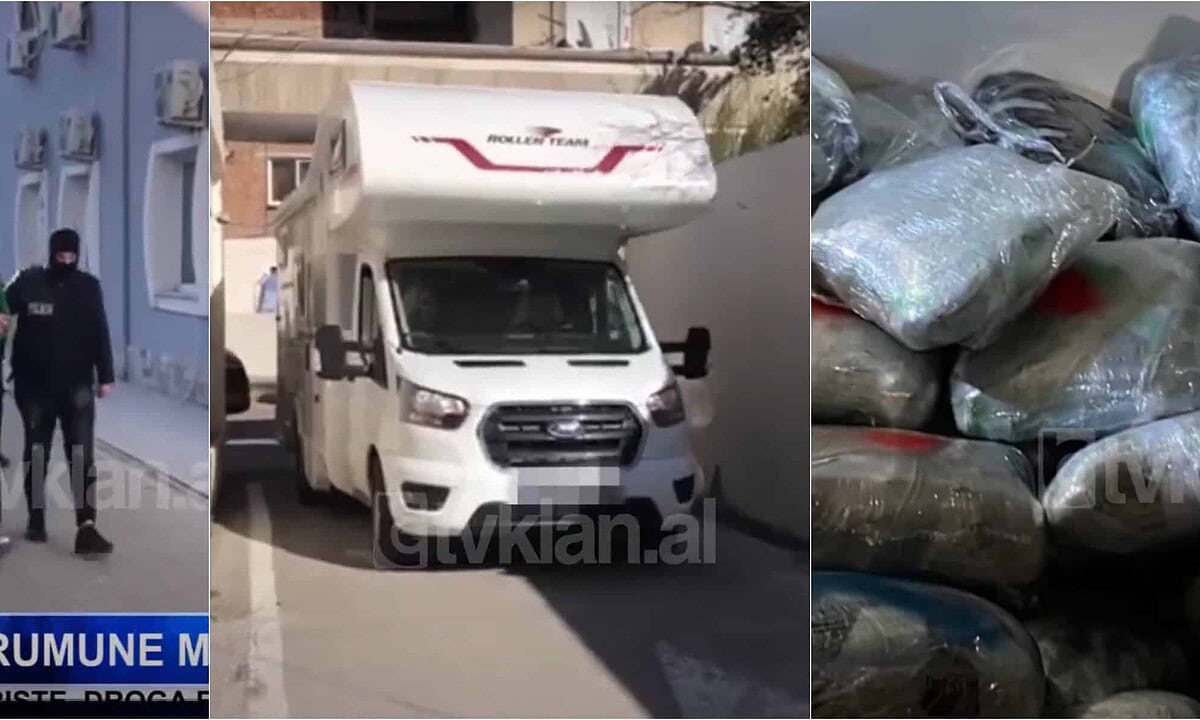 VIDEO Două rulote închiriate din Alba, folosite la trafic de droguri. Tineri prinși în Albania cu 260 de kilograme de cannabis