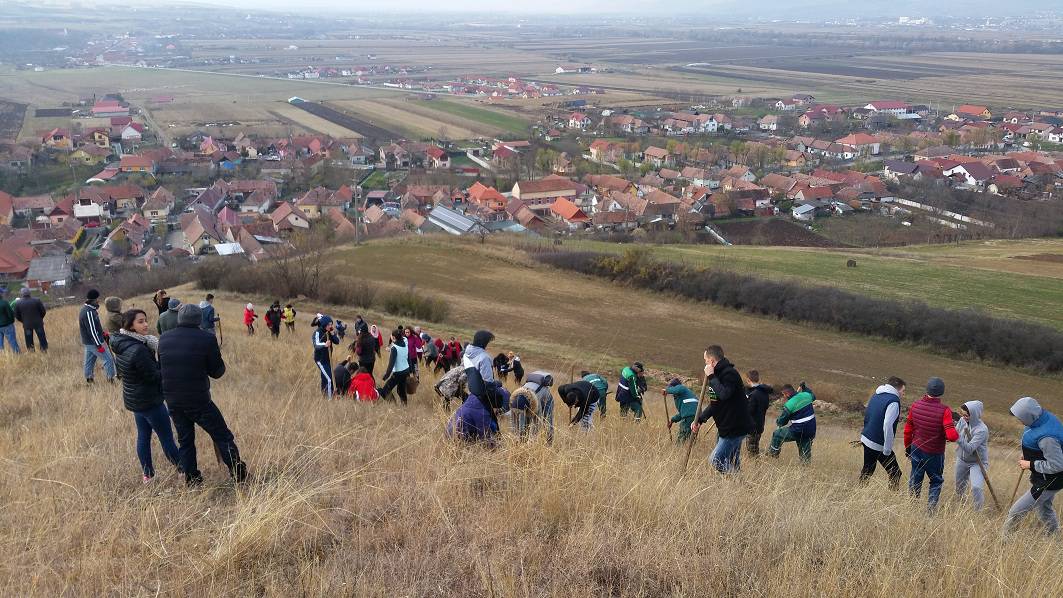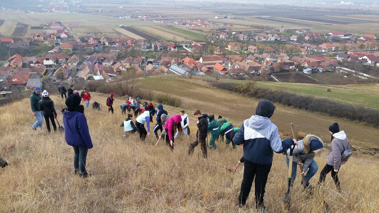 VIDEO-FOTO: Peste 1.000 de salcâmi plantați pe dealul cu eoliană de la Șeușa, de către voluntari Rotary