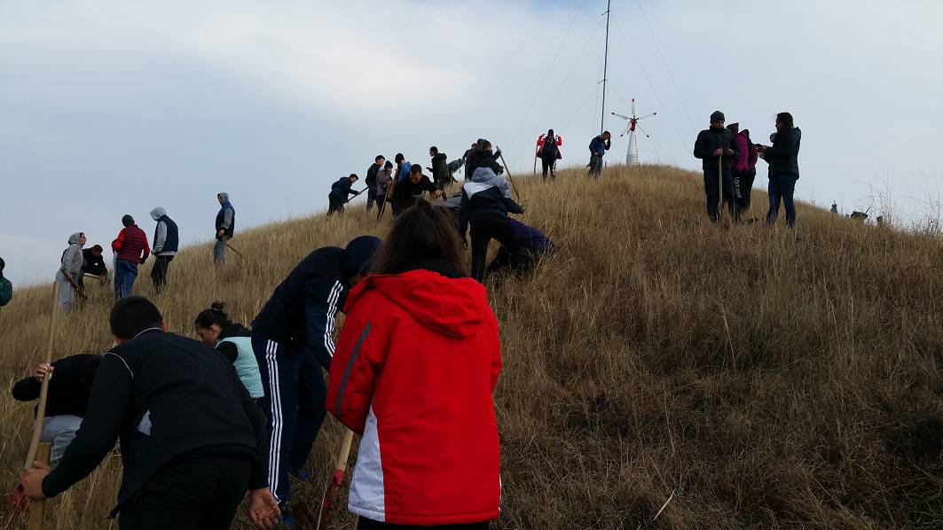 Cu entuziasm și cu poate cu gândul la plăcintele și ceaiurile calde care îi așteptau la sfârșit, voluntarii au săpat întâi gropile. Apoi au adus copacii și i-au așezat, unul câte unul, la locul lor. Este vorba despre o nouă încercare de plantare a acelei zone. Voluntarii au încercat să înființeze acolo o mică pădurice și în anii trecuți dar un incendiu de vegetație le-a distrus, în primăvară, munca.