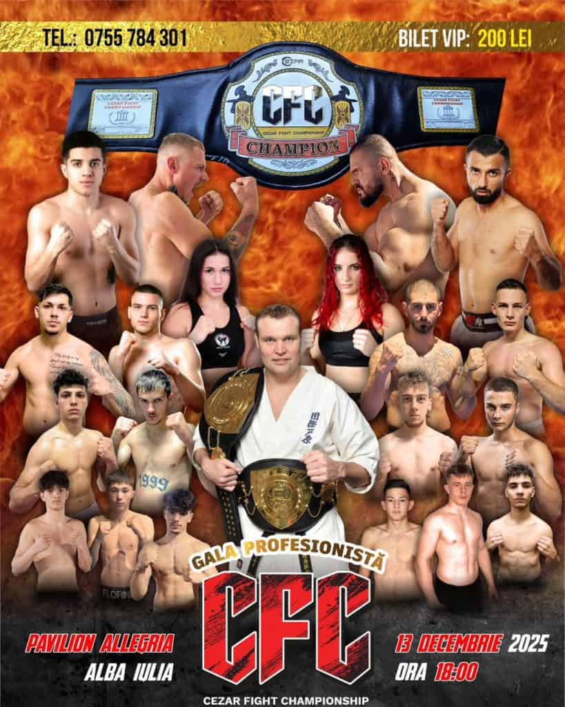 Pe data de 13 decembrie la Alba Iulia, la Pavilion Mercur, va avea loc gala profesionistă de kickbox, Cezar Fight Championship. Este vorba despre clasica competiție de kickbox de la sfârșit de an organizată de clubul Revolution Academy Alba Iulia.