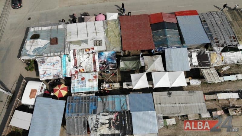 Piața agroalimentară temporară din centrul municipiului Alba Iulia s-a transformat într-o adevărată „mahala”, după ce comercianții au fost mutați din vechiul amplasament, în urmă cu mai bine de trei ani, până la finalizarea lucrărilor la noua construcție. Pentru a rezista condițiilor meteo, vânzătorii și-au amenajat corturi și barăci cu acoperșuri din plastic, tablă sau bannere publicitare.