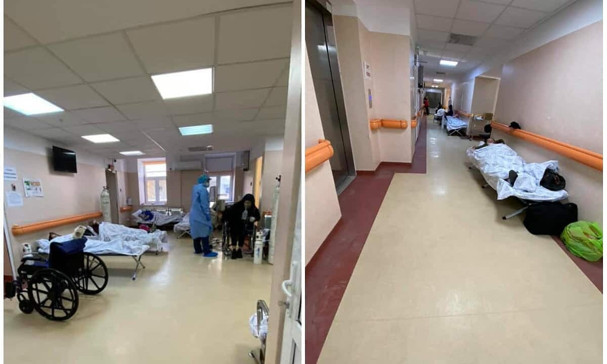 „Cam așa arată holurile spitalului Matei Bals cu bolnavi de Covid, este înspăimântător, nu mai au pe unde să îi așeze, pacienții stau pe scaune la oxigen, sunt internați pe paturi de campanie.