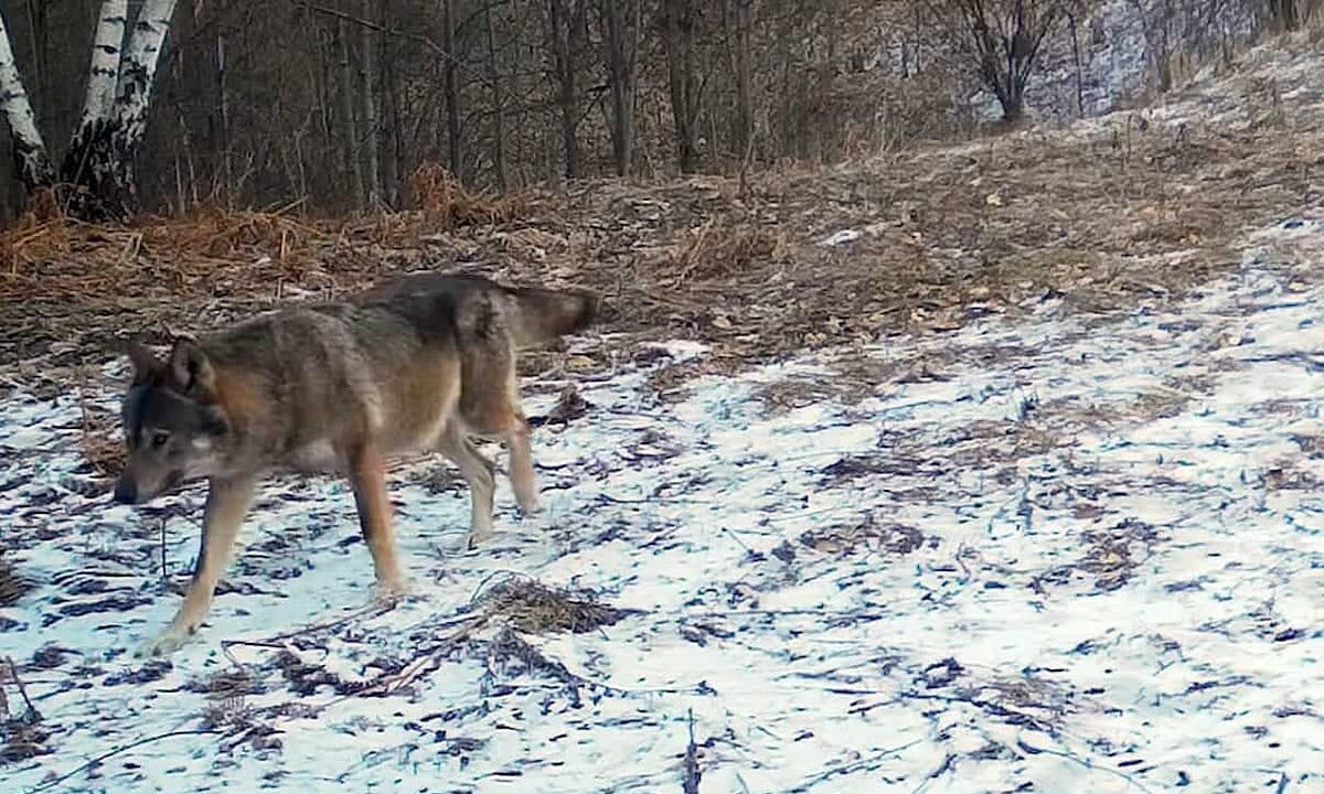 Imagini rare cu o lupoaică gestantă, urmată de un lup, cel mai probabil perechea ei, au fost surprinse într-o pădure din Apuseni de camerele amplasate acolo de reprezentanții Parcului Natural.