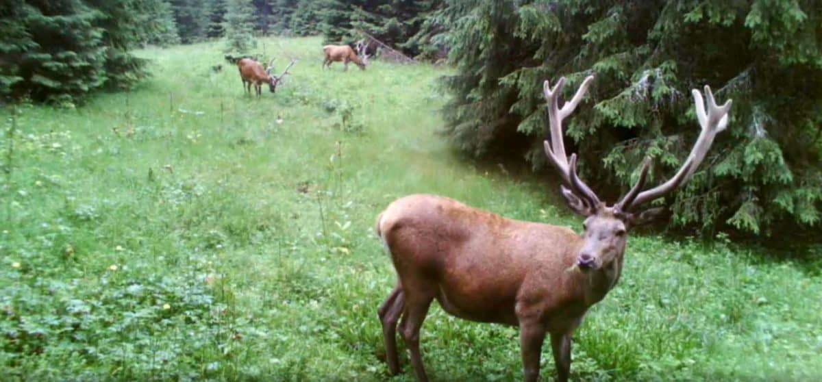 VIDEO: Imagini spectaculoase surprinse în Parcul Natural Apuseni. Mai mulți cerbi se hrănesc în mijlocul pădurii