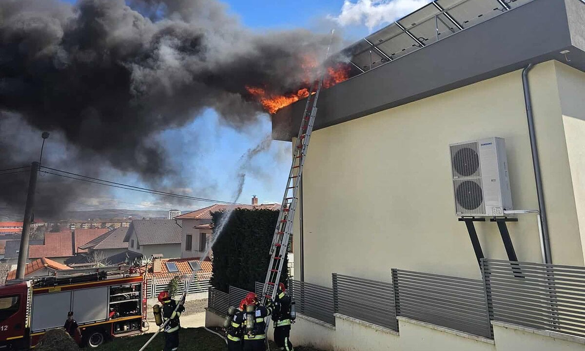 VIDEO: Incendiu la panourile fotovoltaice de pe acoperișul unei case din Alba Iulia