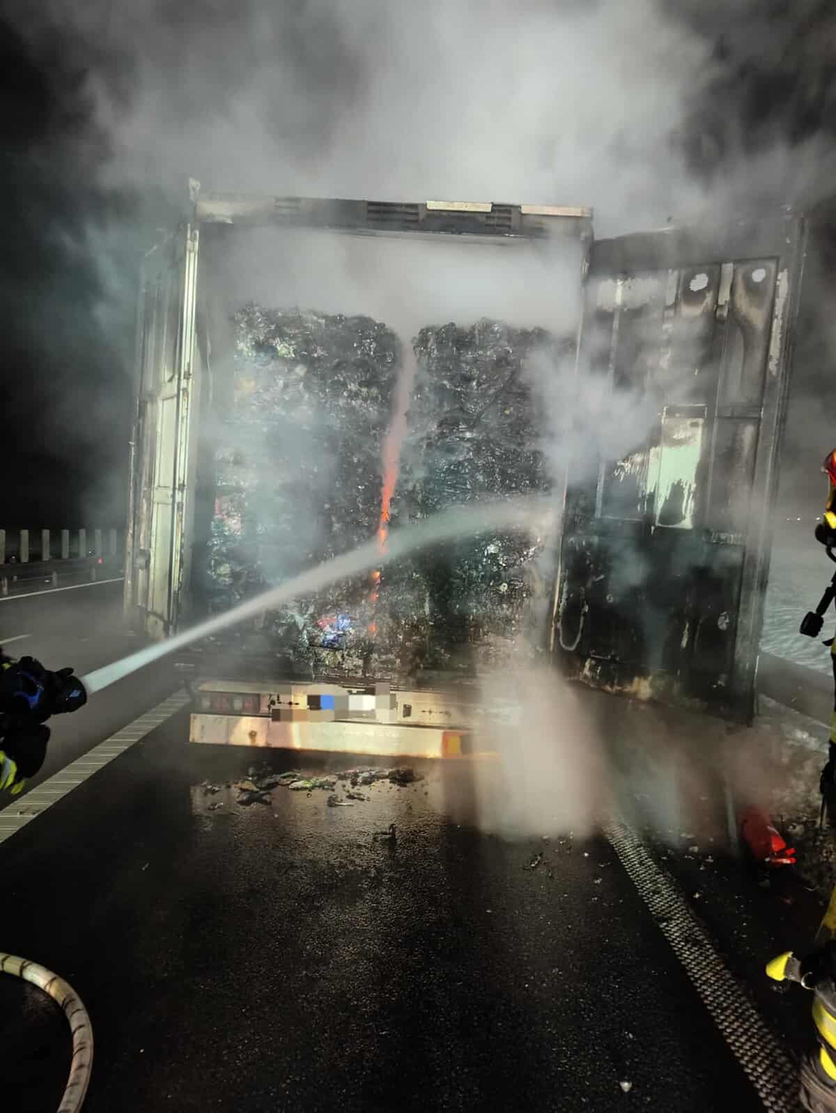 VIDEO: Incendiu pe autostrada A10 sens Alba Iulia-Sebeș. Remorca unui camion a luat foc
