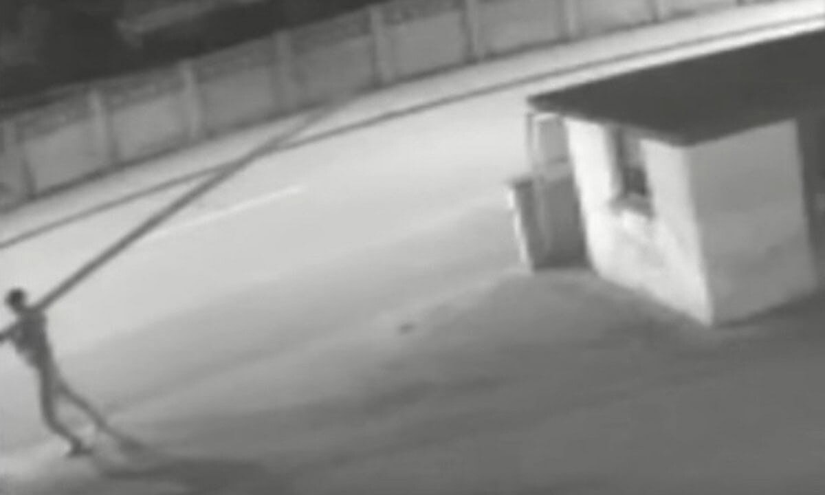 În imagini se vede clar cum acesta trage cu forță de bariera de acces, încercând s-o rupă, apoi lovește cu pumnii panourile expoziției foto de la gardul instituției, încercând să le doboare.