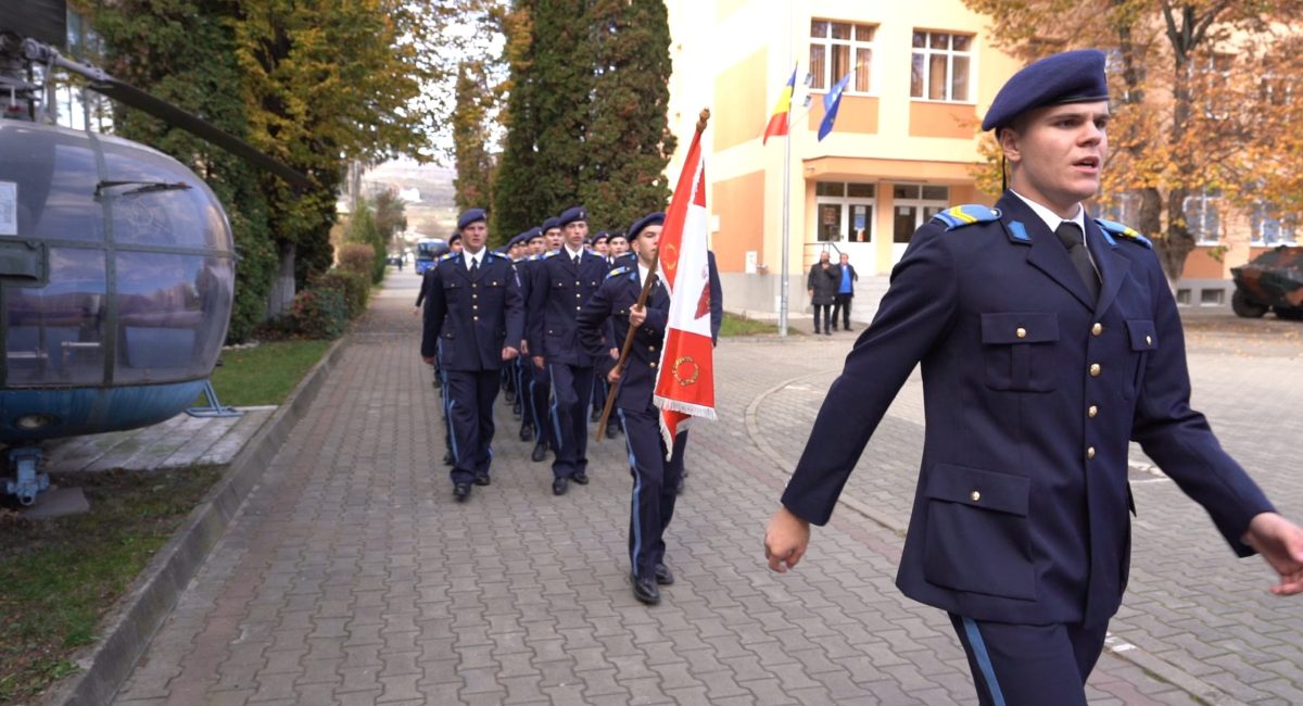 A fost vorba despre un momentde instrucție de front. Este vorba despre o serie de comenzi și mișcări pe care elevii militari trebuie să le facă în perfectă coordonare.