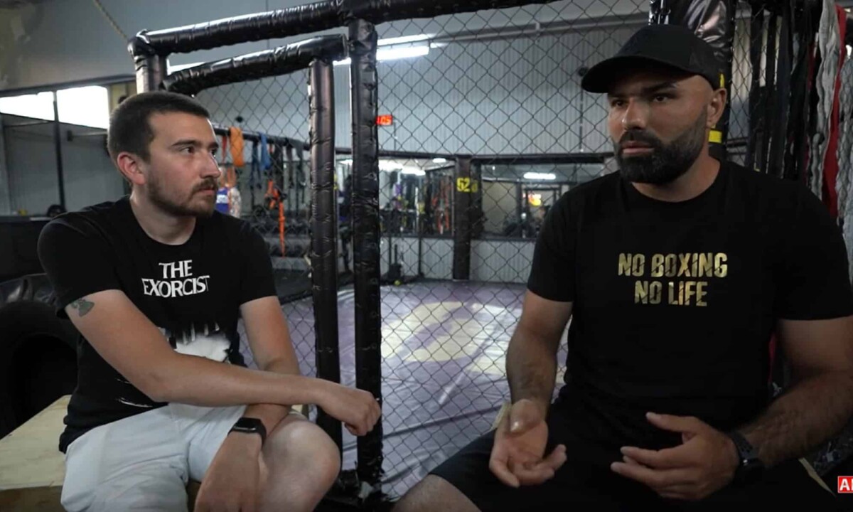 În fața cuștii de luptă, înconjurați de echipamente sportive și mănuși de box, am început discuția cu Bogdan.