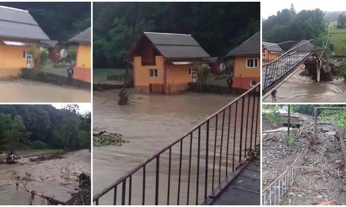 Inundațiile au lovit din nou comuna Roșia Montană din județul Alba. Marți dimineața, viceprimarul comunei, Vasile Morariu, a surprins pe o filmare apele ieșite din matcă care au inundat mai multe gospodării.