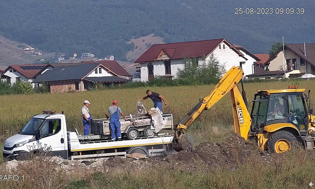 VIDEO: Mai mulți muncitori filmați în timp ce îngropau deșeuri din construcții, pe un teren din Alba Iulia
