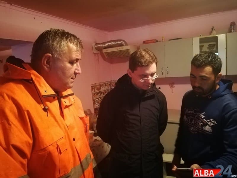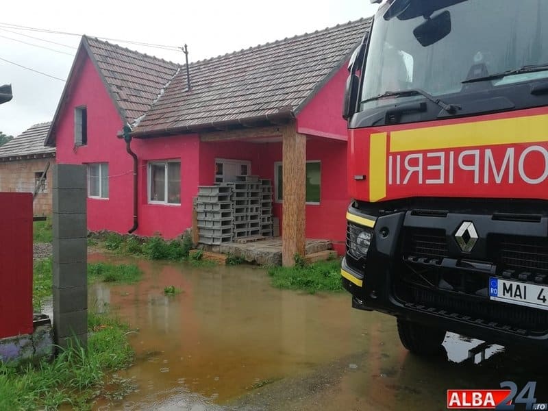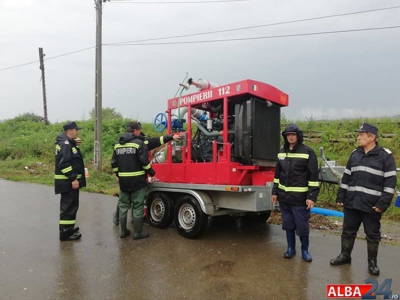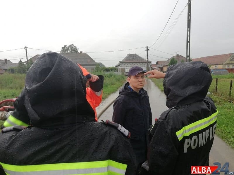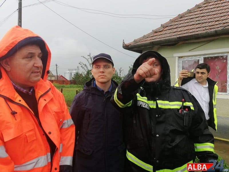 În localitatea Șona, grav afectată de inundații, pompierii din cadrul ISU Alba la apariția ministrului încă acționau în zonă cu o motopompă de capacitate mare și una de capacitate mică pentru eliminarea apei din gospodăriile oamenilor.