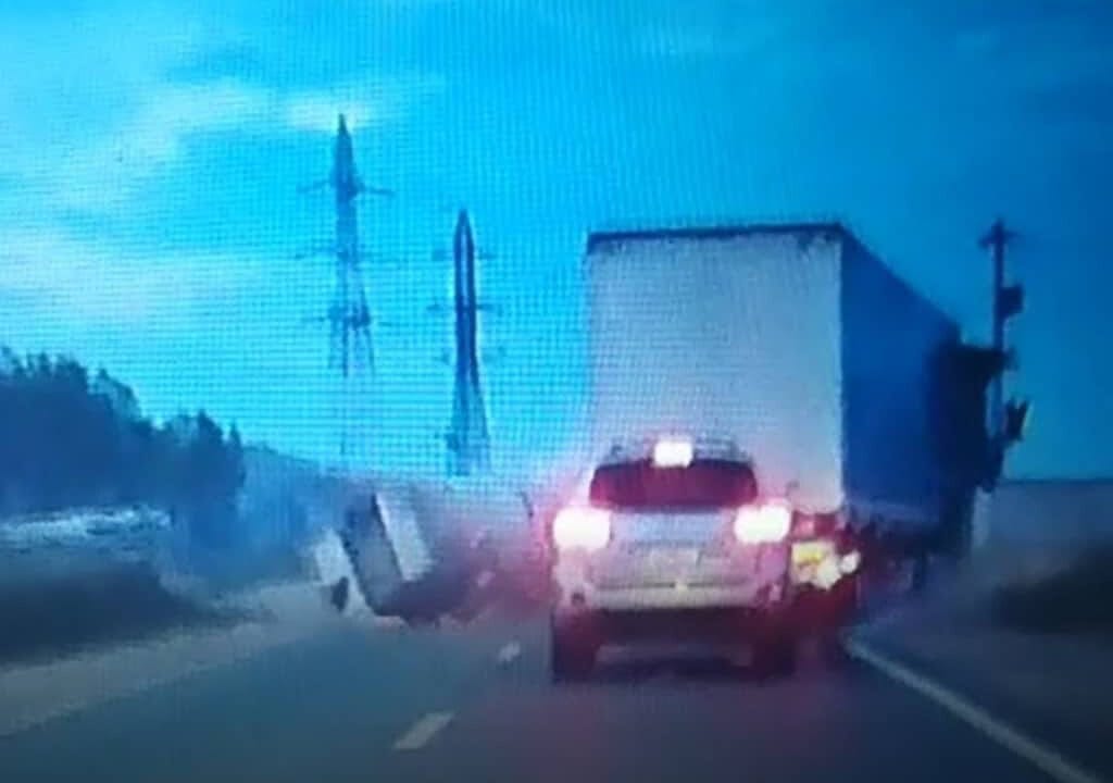 Momentul impactului din accidentul rutier mortal petrecut joi seara pe şoseaua de centură a oraşului Alba Iulia, în urma căruia un bărbat de 54 de ani şi-a pierdut viaţa a fost surprins în imagini de către un participant la trafic. Autoutilitara a fost pur şi simplu spulberată de TIR-ul ce rula regulamentar din sens opus, în coloană.