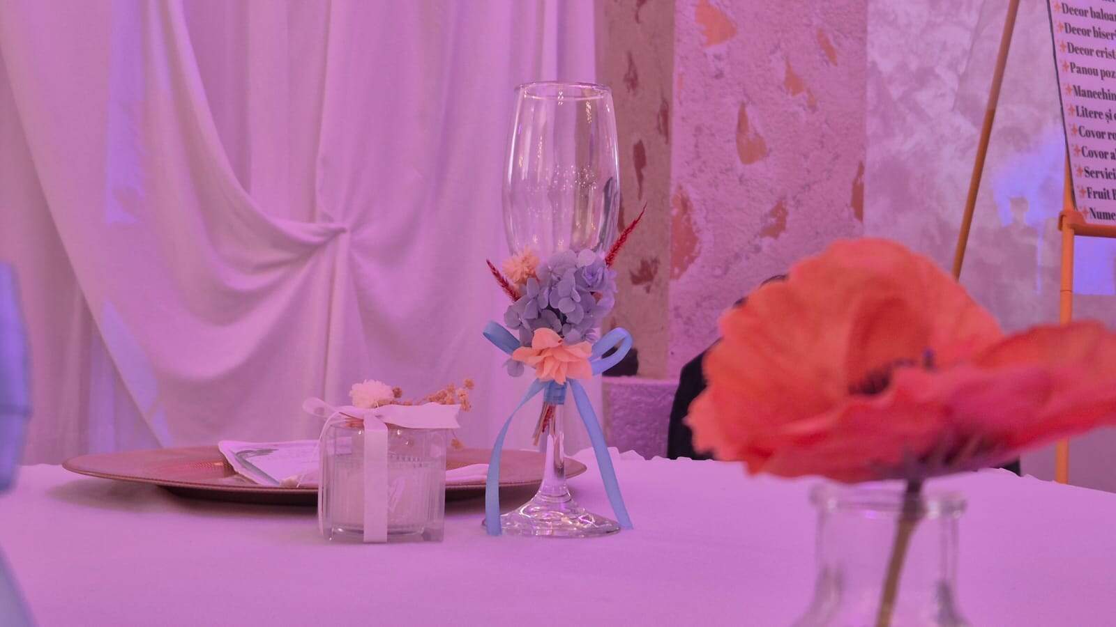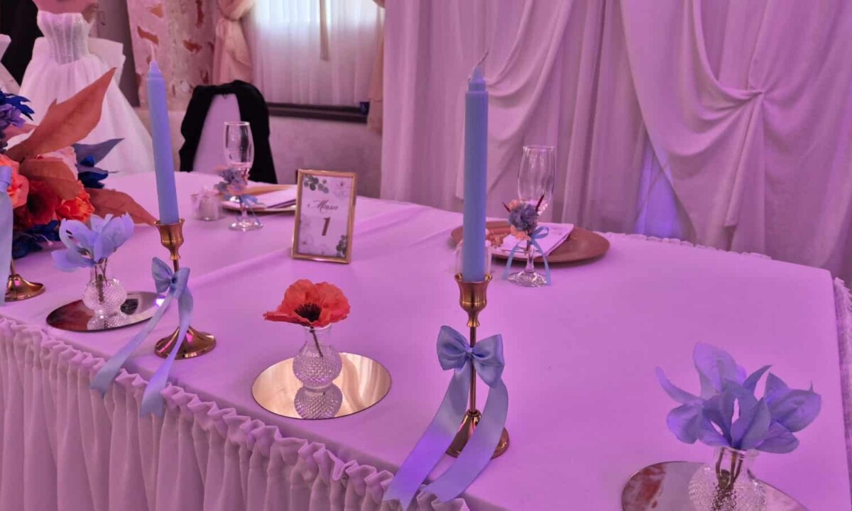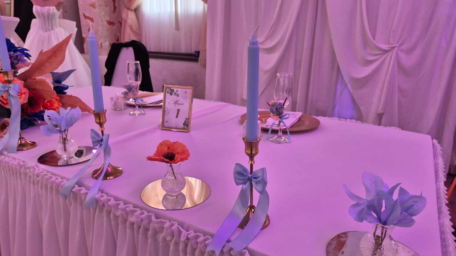 În ceea ce privește variante pentru amenajarea spațiului în care se desfășoară nunta, cei prezenți la Târgul de nunți ”Planul mirilor” spun că sunt preferate, pentru anul 2026, nuanțele deschise de albastru, vișiniu, portocaliu, verde.