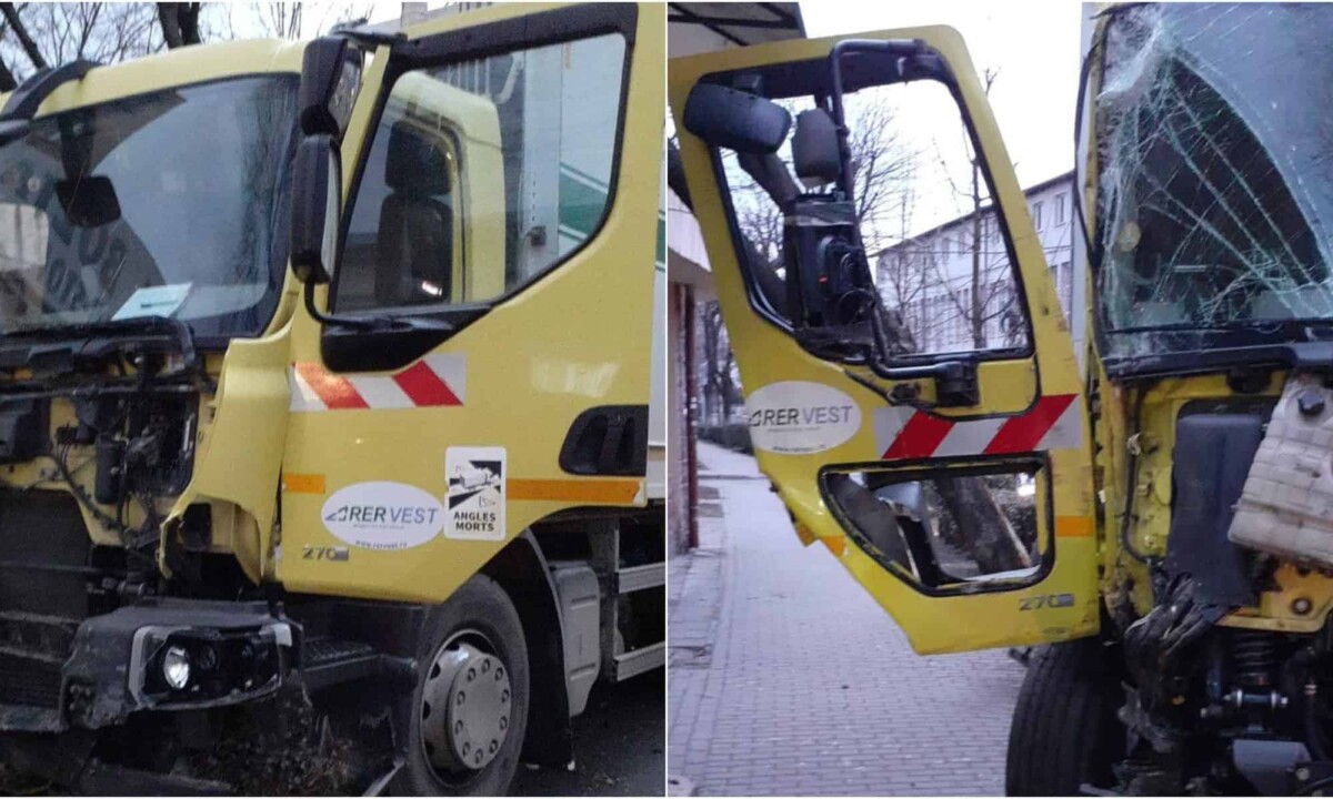 Mașina de gunoi are cutie automată și a fost scapată de sub control de către șofer.