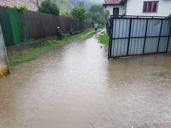 Și comuna Cricau e sub apă. Curțile oamenilor sunt inundate în totalitate.