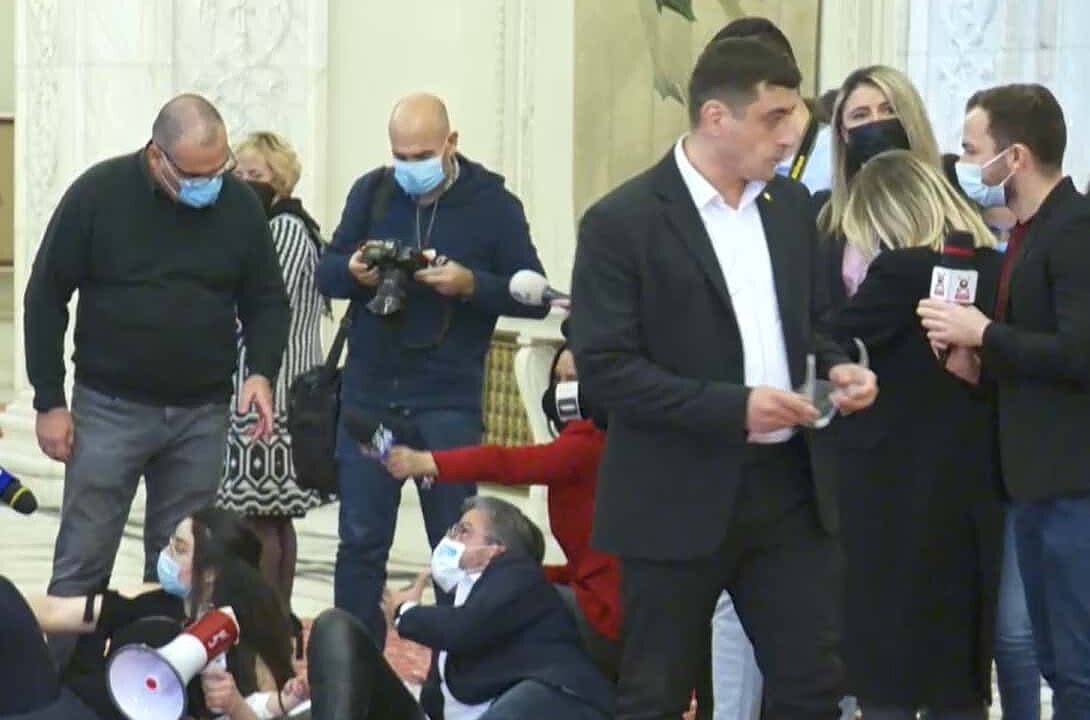 VIDEO: Protest în Parlament, împotriva coaliției PSD-PNL-UDMR. George Simion, pus și el la punct: ”Plecați, vă faceți de rușine”