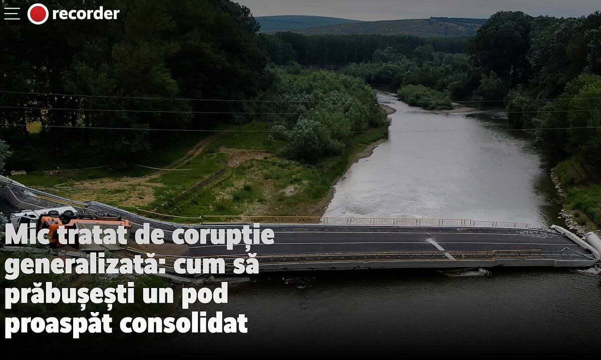 Potrivit Recorder, cazul podului sintetizează perfect modul în care funcționează programele de dezvoltare finanțate de Guvernul României: baroni locali care primesc fonduri de la centru, firme de partid care câștigă toate contractele și lucrări făcute de mântuială, care cedează la scurt timp după inaugurare.